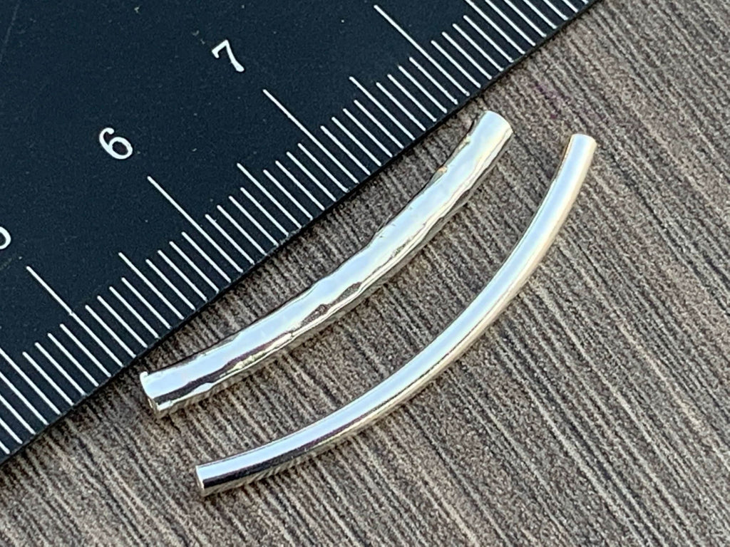 Sterling Silver Curved Tubes - 30mm or 35mm - Smooth or Hammered